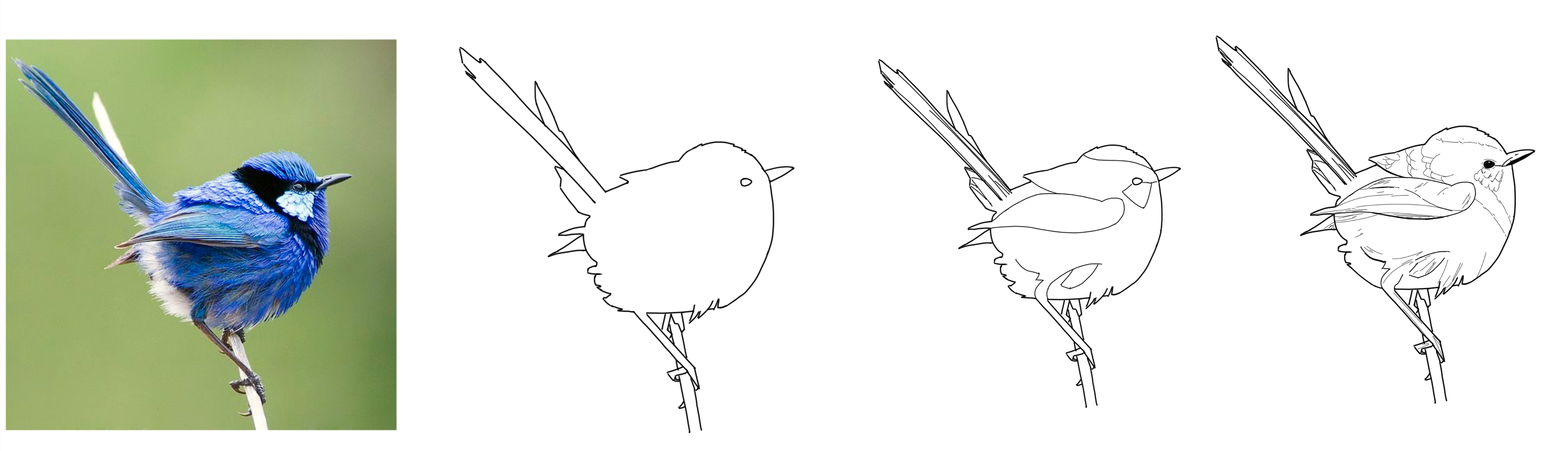 前两步没有什么问题,关键是细化部分,牵扯羽毛的安排。