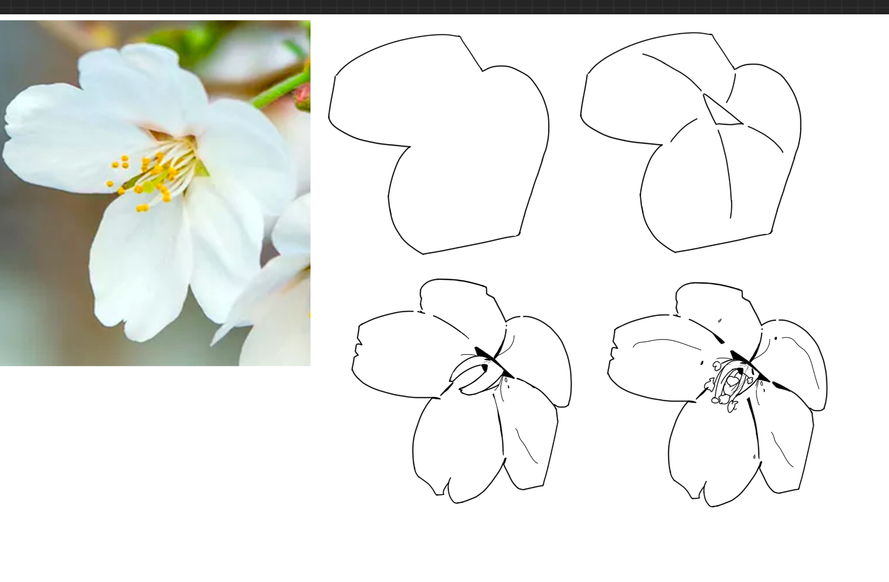 还是一样的步骤,先概括大轮廓,在细分花瓣,最后细化