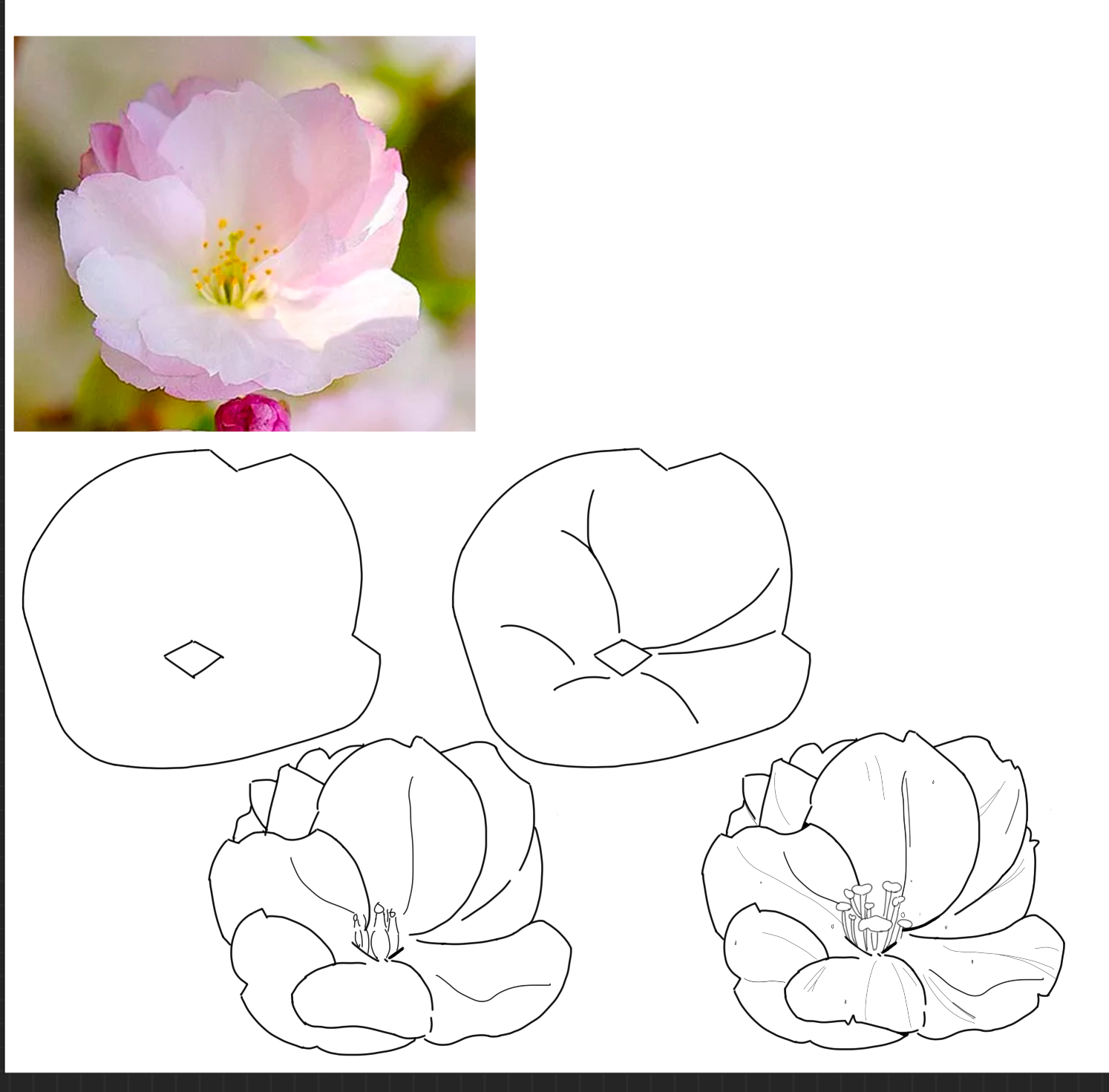 这朵花还有一个难点就是重叠关系,要处理好花瓣相互遮挡